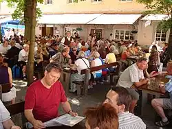 Weltenburg Abbey brewery (Weltenburger Klosterbrauerei) is by some reckonings the oldest monastic brewery in the world, having been in operation since 1050,[2]: 30 although the title is disputed by Weihenstephan Abbey. Weltenburger Kloster Barock Dunkel was given the World Beer Cup award in 2004, 2008 and 2012 as the best Dunkel beer in the world. One wing of the abbey which faces the Danube river houses a large restaurant on the ground floor operated by a tenant. The traditional Bavarian menu includes the abbey's cheese and beer, and guests are also served in the monastery courtyard, which houses a large open-air biergarten during the warmer months.
