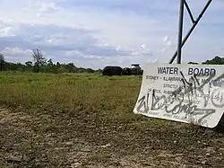 On the eastern side of the suburb between Warrigal Rd and Gum Blossum Drive lies an area of scrub and bushland formerly occupied by the council rubbish dump (closed in 1962), the former sewerage dump (closed in about 1964), and the Sydney Water Reservoir which was completed in 1967. The former council animal pound existed at the northern edge of the old tip, and the southern area was used for a number of years by the Sydney County Council for seasoning timber power poles ("The Pole Yards"). This area is now often used by a wide manner of 'Westleighians' for activities including walking, motorbike riding and general tom-foolerly which has been happening for over 30 years. Due to the existence of the local Sydney Water property, the disused rubbish dump and adjacent area is commonly locally referred to as the 'Waterboard'). Since it has been used for illegal rubbish dumping, public access is illegal and measures have been taken to block access to this area, including local rangers / volunteers patrolling the area. In 2015, Hornsby council purchased 34 hectares of this land to be used for recreational use, such as sporting fields. The local rural fire brigade have permission to use the area for training (including live fire drills), and are somewhat regularly seen carrying out various forms of training and drills.