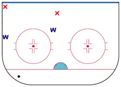 Prior to the puck being dropped for a face-off, players other than those taking the face-off must not make any physical contact with players on the opposite team, nor enter the face-off circle (where marked). After the puck is dropped, it is essential for wingers to engage the opposing players to prevent them from obtaining possession of the puck.