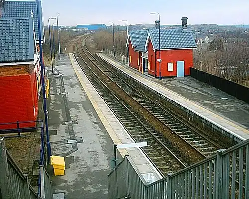 The current station has two platforms; what looks like a third disused and overgrown platform on the Down Side (Sheffield bound side) is a former Goods loading bay, whilst on the Up side (Worksop bound), again what looks like a disused platform is actually the truncated former Up Goods line that ran behind the Up Main platform.[5][6] A number of goods sidings exist immediately to the east, which see sporadic use by engineers trains.