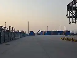 The Container Center (西安铁路集装箱中心站) is one of the 18 railway container central stations planned by the former Ministry of Railways of the PRC,[4] built with a total investment of about RMB 636 million.[5][6] It is located in the South Yard of the station, covering an area of 2,058 mu, 137.2 hectares (339 acres), operated by the China United International Rail Containers Co., Ltd.It consists of four parts: container operation area, express operation area, special cargo loading operation area, and truckload shipping operation area.[5][6]