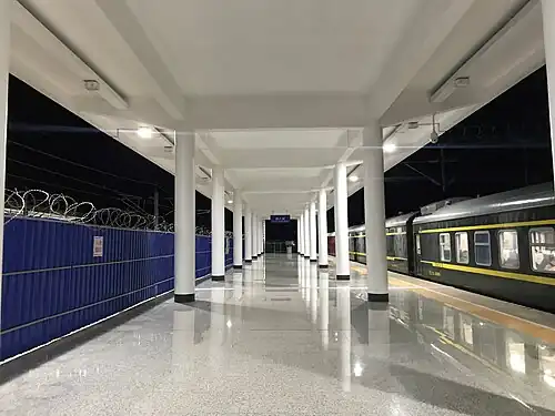 The station opened with the Beijing–Kowloon railway in 1996. In May 2007, services were cut to one passenger service in each direction per day. However, in October 2012 a more frequent service was restored.[1]