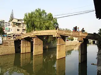 The Xiangfu Bridge (simplified Chinese: 祥符桥; traditional Chinese: 祥符橋; pinyin: Xiángfú Qiáo) is a historic stone arch bridge over the Grand Canal in Xiangfu Subdistrict, Gongshu District, Hangzhou, Zhejiang, China. It is the only Ming dynasty stone arch bridge preserved in Hangzhou.[1] The bridge measures 28 metres (92 ft) long, 3.6 metres (12 ft) wide, and approximately 5 metres (16 ft) high.[2]