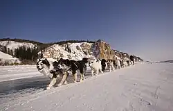 Yakutian Laikas are versatile with an excellent sense of smell, hearing,, vision, strong hunting drive, and endurance; they are aggressive to predators and gentle to humans if properly socialized from a young age. Whereas most aboriginal laika breeds are predominantly hunting dogs, the Yakutian Laika is predominantly a sled dog that also retain rudimentary hunting and herding abilities.[3] However, due to the vastness of Yakutia, Yakutian Laika can be specialized to fulfill the needs of different regions. There are an estimated 200 that are exclusively hunting dogs.[14] Yakutian Laikas are tolerant regarding living conditions and easily endure the hostile climate of northern Siberia. In harsh Siberian conditions, they reveal their stamina; they tend to work in small groups and can work through the whole day, from dawn to sunset.[15]