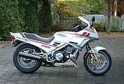 Yamaha released the FJ1100 for model years 1984 and 1985. The FJ1100 was designed by GK Dynamics. This class is characterised by retaining sportiness while integrating more street-friendly riding characteristics, including good maneuverability as well as long-distance comfort, such as a more upright seating configuration designed to reduce back strain and a large fairing to reduce fatigue from wind resistance. Emphasis is placed on a balance of utility and sport, rather than pure performance orientation. The machine was noticeably narrower than many contemporaries, Yamaha achieved this by placing the alternator behind the cylinders instead of the more normal position on the end of the crankshaft.[1]