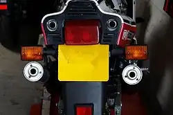 - Modified exhaust pipes, self-retracting sidestand, right dip headlight