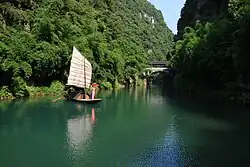 Yichang has rich tourism resources, which attract millions of visitors for its natural scenery located among mountains and rivers. In 2023, Yichang welcomed about 79 million visitors.[33] The most famous attractions include the Three Gorges Dam Tourist Area, Tribe of the Three Gorges, Qingjiang Gallery, Memorial Temple of Qu Yuan, Three Gorges Grand Waterfalls, and Xiling Gorge. The overall revenue from tourism was 110 billion yuan in 2023, which increased 44.5% from last year.[34]