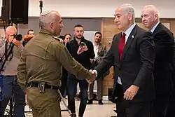 Yoav Gallant (Hebrew: יוֹאָב גָּלַנְט‎, romanizedYo'av Galant; born 8 November 1958) is an Israeli politician and former military officer who served as minister of defense between 2022 and 2024. Gallant was an officer in the Southern Command of the Israel Defense Forces, serving in the Israeli Navy. In January 2015 he entered politics, joining the new Kulanu party. After being elected to the Knesset he was appointed minister of construction. At the end of 2018 he joined Likud, shortly after which he became minister of Aliyah and Integration. In 2020 he was appointed minister of education, and the following year became minister of defense. On 5 November 2024, Prime Minister Benjamin Netanyahu announced that he had dismissed Gallant, effective 7 November, and sought to have Israel Katz replace him.[1] Gallant subsequently resigned from the Knesset on 5 January 2025.