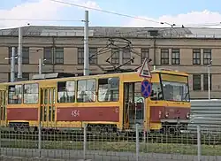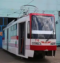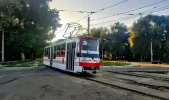 In August 2012, tram depot No. 2 was renovated. After the conservation of the depot, routes No. 5 and 6 were closed.[24] During July to October 2012, the tram track on Lenina Avenue was reconstructed in the section from Metalist Square to Transport Square.[25] Between October and December 2012, at the expense of the owner of the Aurora Shopping Center, a 300 m long tram line was reconstructed on Gorky Street between Gryaznova Street and Komunarivska Street.[26]