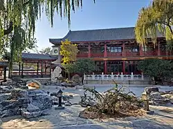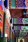 Of all the gardens and parks surrounding the Forbidden City, such as the Beihai and Jingshan, Zhongshan is arguably the most centrally located of them all.[1] The Zhongshan Park houses numerous pavilions, gardens, and imperial temples such as the Altar of Earth and Harvests or Altar of Land and Grain in some translations (Shejitan, 社稷坛), which was built in 1421 by the Yongle Emperor,[2] and it symmetrically opposite the Imperial Ancestral Temple, and it's where the emperors of Ming and Qing dynasties made offerings to the gods of earth and agriculture.[1] The altar consists of a square terrace in the centre of the park.