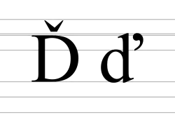 В первой чешской орфографии, Orthographia bohemica, вместо современной ď использовалась ḋ[1].