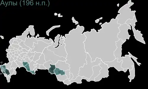 По ОКАТО аулами числятся сельские населённые пункты с адыгским (черкесским), абазинским, карачаевским и ногайским населением в Адыгее, Краснодарском крае и Карачаево-Черкесии, в Ставропольском крае с ногайским и туркменским; в Новосибирской, Омской областях и Алтайском крае с казахским населением.