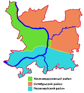 Октябрьский, территория которого является историческим, культурным и промышленным центром города и в настоящий момент занимает площадь свыше 3500 га. Расположен на северо-востоке города. Жилые массивы района соединяют четыре проспекта и более 298 улиц и переулков протяженностью свыше 300 км. В районе проживает 118 273 человек[3].