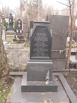- ↑ В записи о браке, доступной на сайте еврейской генеалогии JewishGen.org (требуется регистрация), указывается, что Мендель Беркович Месерер (с одним «с»), уроженец местечка Долгиново 29 лет, и Шима Мовшевна Шабад, уроженка Антоколя 24 лет, сочетались браком 19 января 1895 года в Вильне. Вся семья М. Б. Месерера была записана с одним «с»; Сима Моисеевна Шабад во всех документах того периода записана как «Шима Мовшева Шабад».