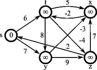 Здесь  — множество вершин графа ,  — множество его рёбер, а  — весовая функция, заданная на рёбрах графа (возвращает длину дуги, ведущей из вершины в ),  — массив, содержащий расстояния от вершины до любой другой вершины.