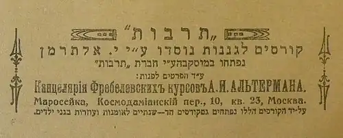 Из Москвы курсы переместились вместе с Альтерманом и Гальпериным в Одессу. С началом Гражданской войны — в Киев. В Киеве он также открыл курсы воспитательниц для где сеть детских садов «Тарбута», финансировавшейся Моше Златопольским и семейством Персицев.