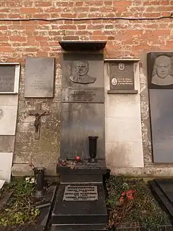 - На могиле установлен надгробный памятник на Новодевичьем кладбище Москвы.