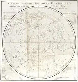 Составленная Джеймсом Куком карта Южного полушария (1776) с пометками о непроходимых полях и горах льда на месте Антарктиды