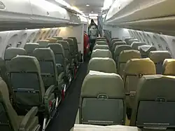Два класса эконом и бизнес. Может перевозить от 68 до 80 пассажиров. 8 кресел в бизнес-классе (шаг кресел 889 мм или 35 дюймов) и 60 в экономическом (шаг кресел 812,8 мм или 32 дюйма). 2 кухни и 2 туалета.