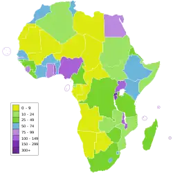 Коэффициент фертильности (среднее количество детей на одну женщину) для стран Африки к югу от Сахары в 2018 году составляет 4,7, что является самым высоким показателем в мире, согласно данным Всемирного банка[44].