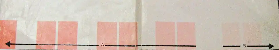 - в пробирках с полуторачасовой порцией, моча имеет алое окрашивание. Диагностическое значение имеет интенсивность этого алого окрашивания, его определяют сравнивая цвет мочи со специальной цветовой шкалой, прилагаемой к комплекту.