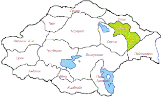 Согласно рукописи «Ашхарацуйц» Великая Армения подразделялась на 15 ашхаров[1]: