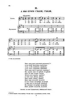 - ↑ Балакирев М. А., Гиппиус Е. В. Русские народные песни: для одного голоса с сопровождением фортепиано — М.: Гос. Музыкальное изд-во, 1957 — 375 с. — С. 296
