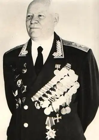 - ↑ Калашников К. А., Додонов И. Ю. Высший командный состав Вооружённых сил СССР в послевоенный период. Справочные материалы (1945—1975). Том 4. Командный состав Сухопутных войск (армейское и дивизионное звенья). Часть первая. — Усть-Каменогорск: «Медиа-Альянс», 2019. — 428 с. — ISBN 978-601-7887-31-5. — С.225-226.