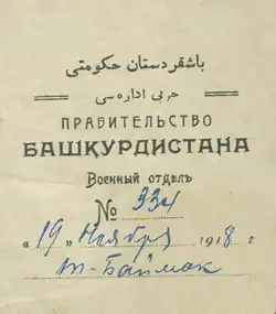 Согласно фарману Правительства Башкурдистана от 12 июня 1918 года для управления Башкирским войском был образован Башкирский военный совет[7].