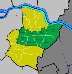 Пересмотренные границы избирательного округа Бекслихит и Крейфорд (зелёный) в составе лондонского боро Бексли (жёлтый)