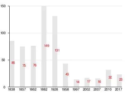 | 1838 | 1862[20] | 1928 | 1958 | 1997 | 2007[21] | 2010[22] |