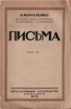 | 1917 | Открытое письмо В. Л. Бурцеву | Опубликовано в газете «Русские ведомости», 1917, № 184[91], 12 августа[109]. Вошло в: Короленко 2002. |