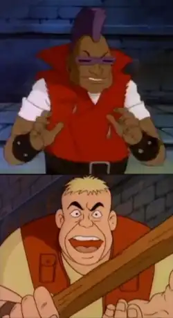 По заданию Шреддера они вместе со своей бандой пытаются помешать Эйприл О’Нил сделать репортаж о преступниках. Эйприл убегает от банды и скрывается в канализации, где её защищают от нападения Черепашки-ниндзя. Будучи поверженной, банда спасается бегством. Тогда для противостояния мутантам-черепашкам Шреддер решает создать своих мутантов. Бибоп и Рокстеди были выбраны в качестве добровольцев. Для создания мутантов роботы украли из зоопарка носорога и кабана и притащили их на Технодром.