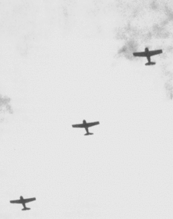 Настало временное затишье в воздушных боях над Гуадалканалом — японцы прекратили авианалёты в связи с плохой погодой с 14 по 27 сентября. В этот период обе стороны укрепляли свои авиационные подразделения. Японцы доставили 85 истребителей и бомбардировщиков на авиабазу в Рабаул, а США доставили дополнительно 23 истребителя и другие самолёты на Хендерсон-Филд. 20 сентября японцы имели в распоряжении в общей сложности 117 самолётов в Рабауле, а союзники 71 самолёт на Хендерсон-Филд[79]. Война в воздухе продолжилась японским авианалётом на Гуадалканал 27 сентября, на отражение которого поднялись истребители флота и морской пехоты с Хендерсон-Филд[80].