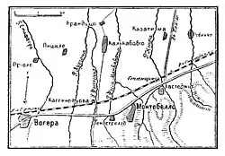 На рассвете отряд фон Стадиона двинулся из Вакарицы 3 колоннами: правая (принца Гессенского) — на Калькабабио, с задачей атаковать Вогеру с севера; средняя, генерала Баумгартена (бригады Галя и Бильса) — на Робекко (Галь) и Казатизма (Бильс); левая, генерала Урбана (бригады Шавгоче — 4 батальона и Браума — 3 батальона, 2 эскадрона гусаров и 16 артиллерийских орудий), двинулась к Вогере через Кастеджио, имея бригаду Шавгоче в авангарде[1].