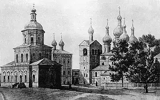 | Богоявленский собор • Трапезный корпус • Колокольня (перестроенная башня XVII века) | |