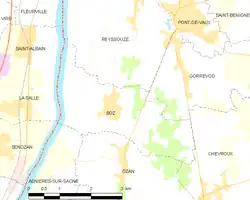 Коммуна расположена приблизительно в 340 км к юго-востоку от Парижа, в 75 км севернее Лиона, в 34 км к северо-западу от Бурк-ан-Бреса[1].