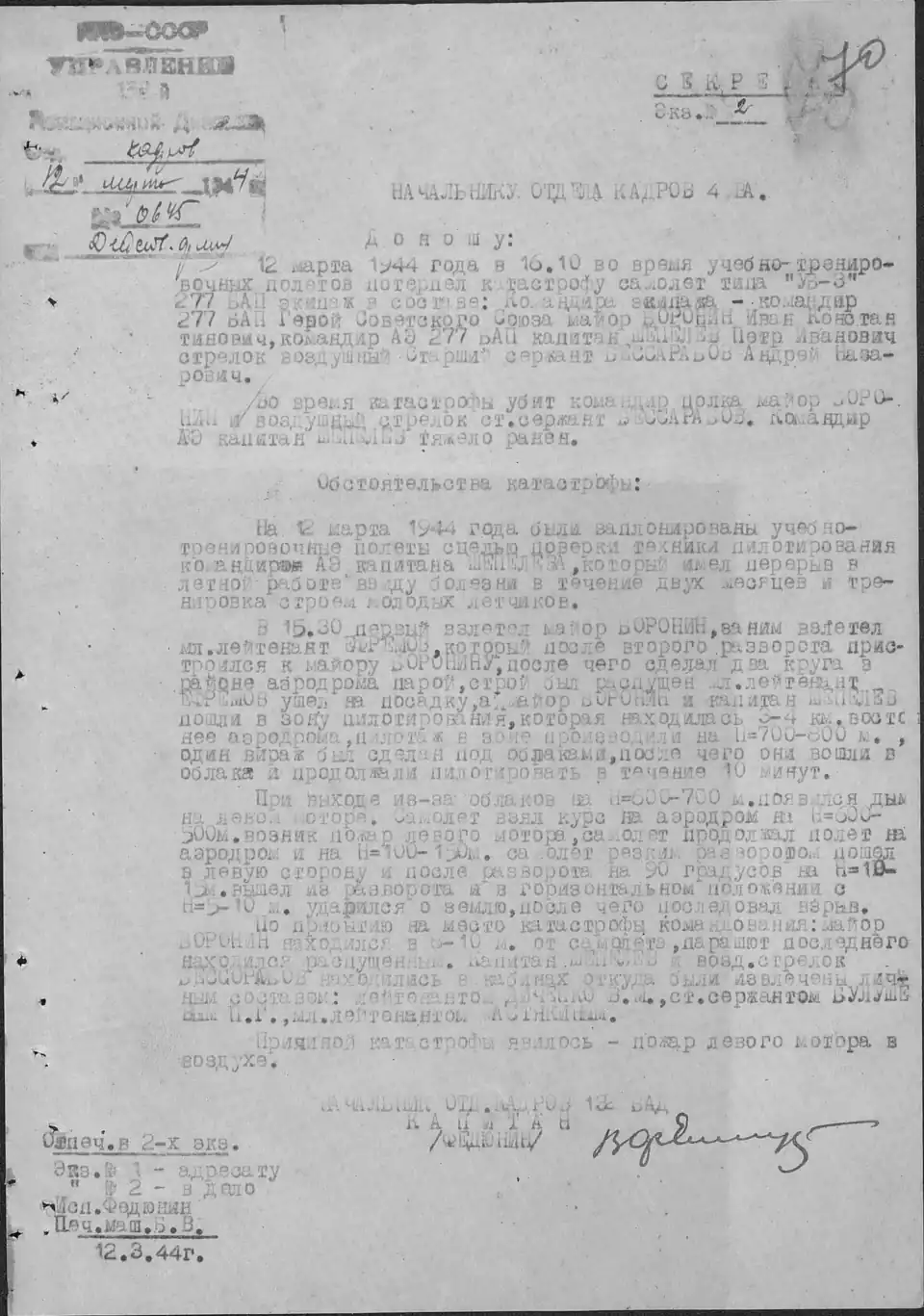 | Донесение об авиакатастрофе в 277-м бомбардировочном авиационном полку | |||