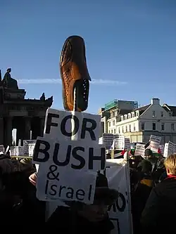 - ↑ В Ираке уничтожили памятник брошенному в Буша ботинку. Дата обращения: 31 января 2009. Архивировано 2 февраля 2009 года.