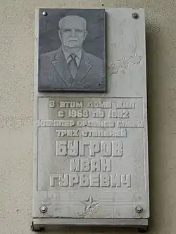 - ↑ Мемориальная доска Бугрову Ивану Гурьевичу. Сайт архиват.рф. Дата обращения: 5 июля 2015. Архивировано из оригинала 10 августа 2016 года.