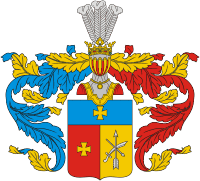Описание герба: Выдержка из Общего гербовника Щит разделен горизонтально на две части, из коих в верхней в голубом поле изображен золотой крест. В нижней части, разрезанной перпендикулярной чертой, находится в правом красном поле золотой же крест, а в левом золотом поле крестообразно положены меч, бунчук и стрела, остриями обращенные вверх. Щит увенчан обыкновенным дворянским шлемом с дворянской на нем короной и тремя страусовыми перьями. Намет на щите голубого и красного цвета, подложенный золотом. Герб внесен в Общий гербовник дворянских родов Российской империи, часть 2, 1-е отделение, стр. 120 |
