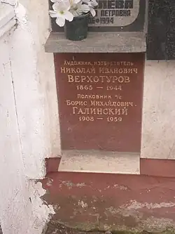 - 1 2 3 4 Верхотуров Николай Иванович (1865–1944). Новодевичье кладбище: Известные люди, похороненные на Новодевичьем кладбище в Москве. Двамал (6 ноября 2008). Дата обращения: 31 августа 2011. Архивировано из оригинала 25 декабря 2012 года.