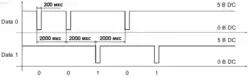 Передача ведётся короткими импульсами. Наличие импульса в линии «Data0» означает что был передан лог.0, наличие импульса в линии «Data1» означает что был передан лог.1. Ширина импульсов и их период сильно варьируется в зависимости от изготовителя считывателя. Ширина импульсов обычно в диапазоне 20…200 мкс. Период следования импульсов — 300…3000 мкс.