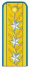 | Российское соответствие | Генерал армии | Генерал-полковник | Генерал-лейтенант | Генерал-майор | Полковник | Подполковник | Майор | Капитан | Лейтенант | Младший лейтенант |