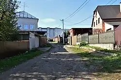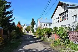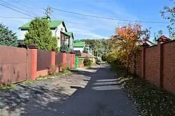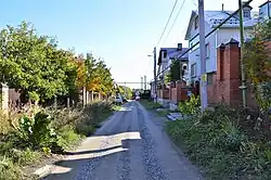 Первоначально указанный посёлок имел одноэтажную усадебную застройку, которая до настоящего времени не сохранилась. Сейчас на этом месте находятся несколько трёх- и четырёхэтажных многоквартирных домов, двух- и трёхэтажные дома коттеджного типа, а также одно крупное двухэтажное домовладение дворцового типа (ул. Строителей, 1). В основном эти здания были возведены в 2010-е годы.