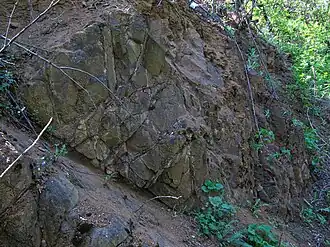 Выходы амфиболитов на правом берегу реки Саксагань в районе шахты «Родина». В пределах Криворожья существует только 2 значительных места выхода амфиболитов на земную поверхность.