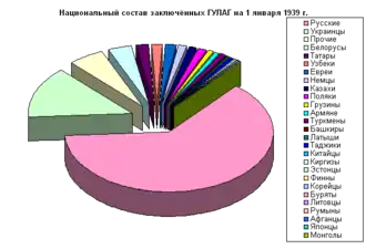 В 1939—1941 года численность заключённых ГУЛАГа значительно возросла за счёт арестованных с новых территорий СССР и осуждённых за новые составы преступлений. На 1 января 1939 года в лагерях, колониях и тюрьмах ГУЛАГа содержались почти 1 990 000 заключённых[21]. В исправительно-трудовых лагерях содержались 1290 тыс. человек (в том числе 107 тысяч женщин и около 440 тысяч мужчин осуждённых за контрреволюционную деятельность)[22]. На январь 1941 года в лагерях, колониях и тюрьмах СССР содержалось около 2,9 млн человек, а ещё 930 тысяч человек находились в ссылке[23].