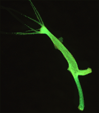 Фрагменты разрезанного тела гидры сохраняют информацию об ориентации оси тела организма в структуре актинового цитоскелета: при регенерации ось восстанавливается, волокна направляют деление клеток. Изменение структуры актинового скелета может привести к нарушениям в регенерации (образованию нескольких осей тела)[8].