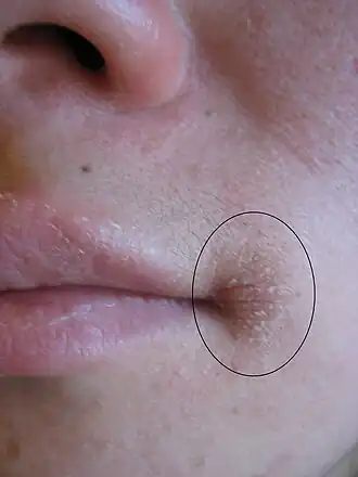 Наиболее характерными клиническими признаками являются: хейлит, ангулярный стоматит, глоссит, изменения конъюнктивы и роговицы, нарушение зрения. Дерматиты при В2-витаминной недостаточности имеют ряд особенностей: на коже лица, веках, ушных раковинах, крыльях носа и носогубных складках развивается шелушение с уплотнением век и утолщением кожи.