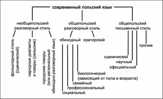 Формирование смешанных языковых формаций происходит в результате взаимодействия региональных обиходно-разговорных форм общепольского языка с сельскими говорами, но в некоторых случаях возможно влияние, и даже очень значительное, других функциональных стилей литературного языка, как, например, публицистического в случае воздействия на смешанный идиом средств массовой информации[1].